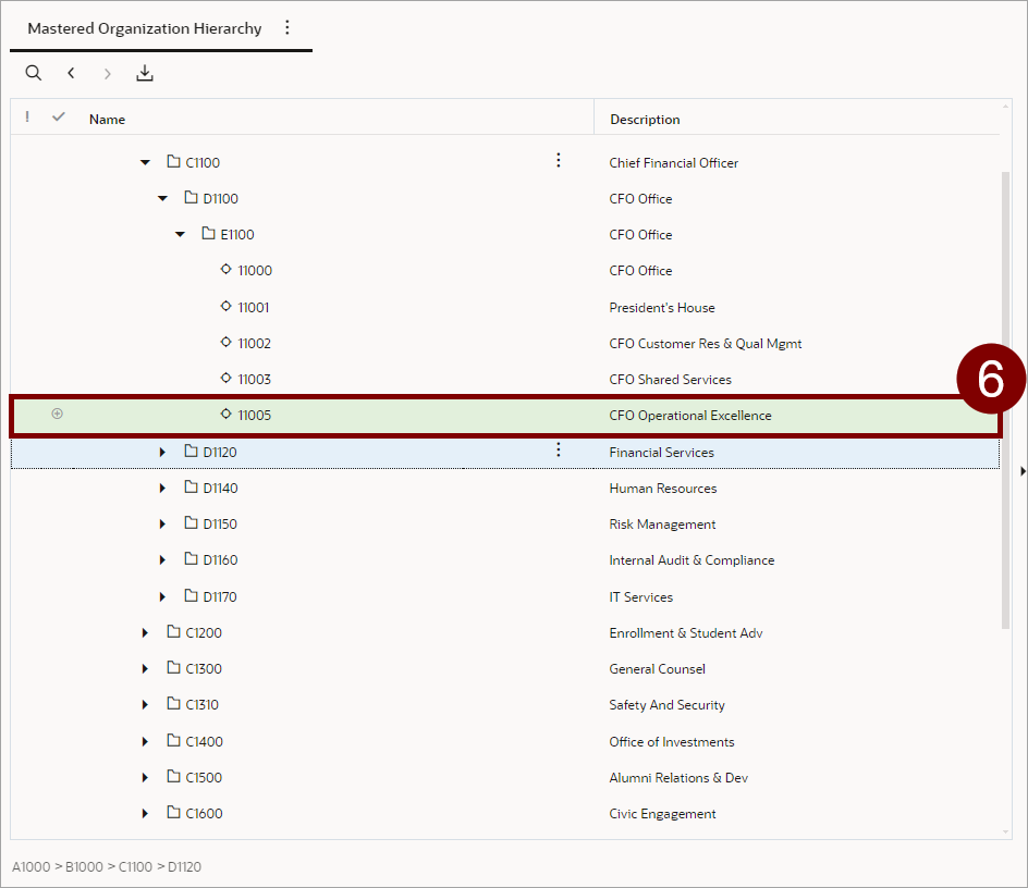 - Nodes: Master or reference data records used to describe, qualify, or summarize enterprise data. Nodes are all the items that are grouped within the hierarchies available in Viewpoints.